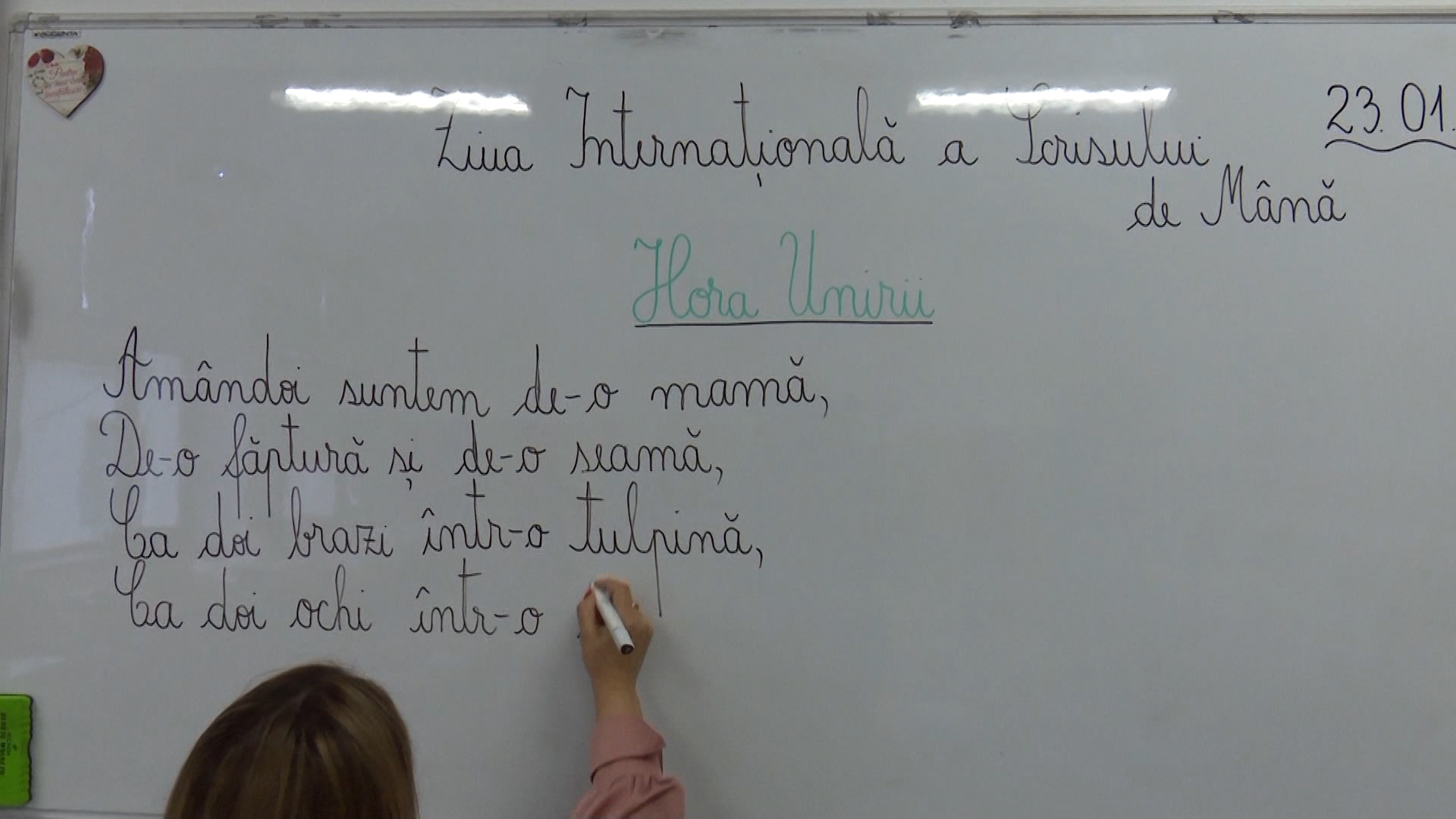 Acțiune inedită, astăzi, la Școala Gimnazială „Constantin Brâncoveanu” din Râmnicu Sărat, cu ocazia Zilei Internaționale a Scrisului de Mână. Timp de 20 de minute, toți elevii școlii au fost angrenați într-o activitate dedicată conștientizării importanței scrisului de mână în era digitală. Coordonați de profesori, copiii au scris poezia „žHora Unirii”ž de Vasile Alecsandri, punând accent pe frumusețea și unicitatea scrisului de mână, precum și pe rolul său în educație și cultură.